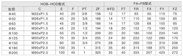d.安裝尺寸(包括活塞桿端尺寸、油口尺寸、安裝部位尺寸)